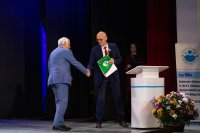 И.Ю. Долматов передал слово для приветствия научному руководителю ННЦМБ ДВО РАН - академику А.В. Адрианову. «У меня есть несколько поручений – из Министерства науки и высшего образования Российской Федерации – нашего учредителя, из Российской академии наук, которые попросили передать всем вам поздравительные адреса», - сообщил Андрей Владимирович. «Мне всегда приятно от нашего учредителя слышать такие слова, что Национальный научный центр морской биологии стал флагманом морской биологии не только на Дальнем Востоке России, но и вошел в число ведущих научно-исследовательских организаций нашей страны. Вы должны гордиться своими традициями, масштабными исследованиями Мирового океана. Министерство желает нам и в дальнейшем продолжать такую работу и выражает искреннюю благодарность всему коллективу, каждому сотруднику за ваш высококвалифицированный труд на благо отечественной и мировой науки. Приветственный адрес от Министерства науки и высшего образования Российской Федерации подписал заместитель Министра Дмитрий Владимирович Пышный. Есть у нас и адрес от нашего профильного Департамента, курирующего наши научные центры – это Департамент координации деятельности научных организаций. Здесь очень много теплых слов и поздравлений, коллеги отмечают, что коллектив не только продолжает дело отцов-основателей, но и уверенно идет дальше, вовлекая молодежь в научные исследования, развивая международные связи. Коллеги выражают искреннюю благодарность коллективу Центра и желают и впредь оставаться флагманом морской биологической науки».