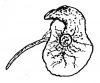 Клетка-споронт: вид нижней половины правой стороны клетки с щупальцем